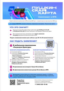 С 01.01.2026 новым оператором реализации программы «Пушкинская карта» становится Банк ВТБ